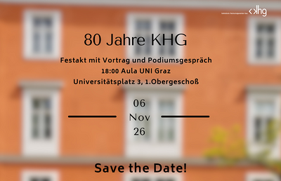 Die Katholische Hochschulgemeinde Graz feiert am Freitag, dem06. NOV 2026 um 18:00 Uhr in der Aula der Universität Graz ihr 80-jähriges Bestehen. Nach Vortrag und Podiumsgespräch laden wir bei...