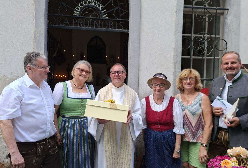 Der Pfarrgemeinderat überraschte Ihn zu seinem 30 jährigen Priesterjubiläum. Die Adriacher Sängerrunde gestaltete die Messe feierlich mit - und als Höhepunkt wurde "Die Ode an die Freude" angestimmt. Der Pfarrgemeinderat überreichte Herrn Pfarrer Ruthofer zu diesem Anlass eine Albe und einen Ledereinband für das Brevier. Pfarrer Ruthofer zeigte sich tief bewegt und sichtlich überrascht.