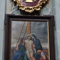 Das Fastenbild wurde zwischen 1764 und 1775 von Josef Adam Mölk in Öl auf Leinwand gemalt und 1990/91 von Frau Liselotte Reicher-Kuhna restauriert.  Es zeigt die Kreuzigung auf Golgotha, zu Füßen des toten Jesu stehen seine Mutter Maria, Maria-Magdalena und der Lieblingsjünger Johannes.