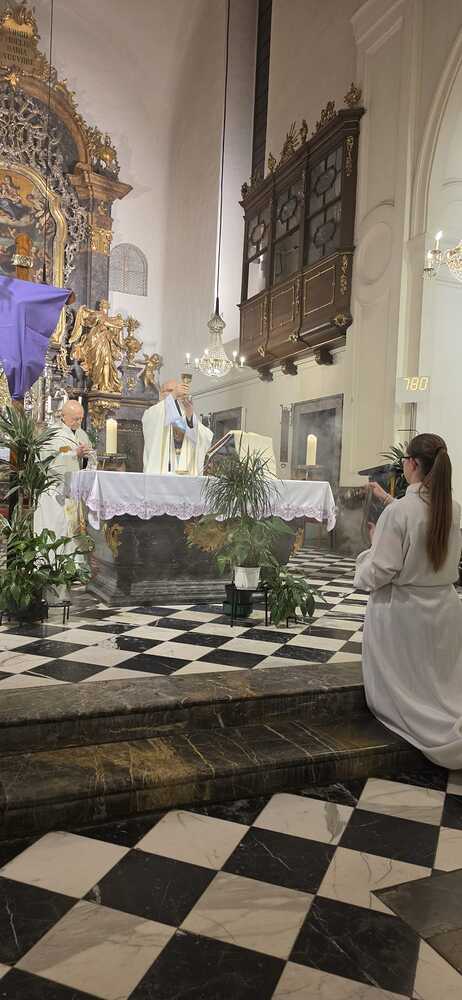 Am 25. März, Hochfest Verkündigung des Herrn, haben wir unser Patroziniumsfest gefeiert. Nach der Heiligen Messe war die Lichterprozession im Kreuzgang.