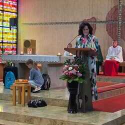 Gesegnet und gestärkt konnten die Gottesdienstbesucher:innen das neue Schul- und Arbeitsjahr beginnen. Alle Kindergarten-, Schultaschen, Unirucksäcke, Laptoptaschen...und Koffer wurden mit ihren Besitzer:innen mit dem Segen Gottes und dem Wissen "Ich bin nicht allein" begleitet. Als Erinnerung daran wurden kleine Segens- und Stärkungssymbole verteilt. Tina Schörgi lud alle ein wieder mehr zu segnen, was jede und jeder darf, und den Mitmenschen Gutes zu wünschen: durch ein Kreuz auf die Stirn beim Gute Nacht sagen, beim Anschneiden eines Laib Brotes, beim Abschied mit Weihwasser.... Alle Kinder erhielten kleine Weihwasserfläschchen und die Erwachsenen die Erinnerung, dass wir "Gott befohlen" sagen, wenn wir "tschüss" sagen, das vom französischen a dieu kommt oder "God be with you" beim Gruß "bye, bye". Ein gemischter Chor hat die Feier wunderschön musikalisch gestaltet.