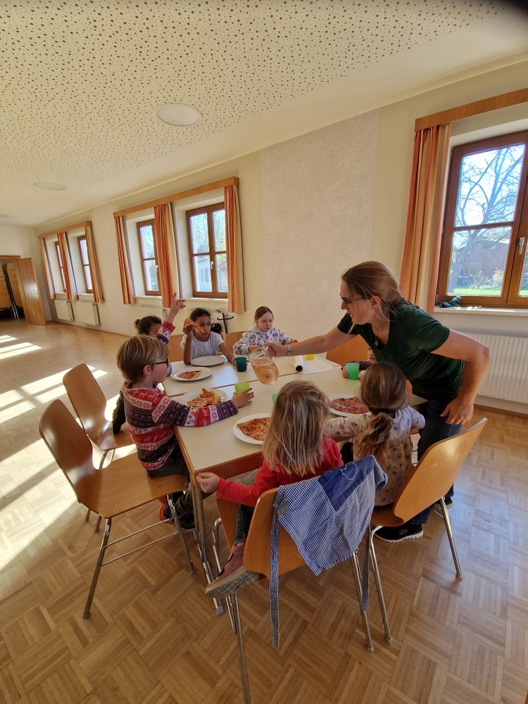 Als Belohnung gab es dann für alle Pizza und Pommes zum Mittagessen.