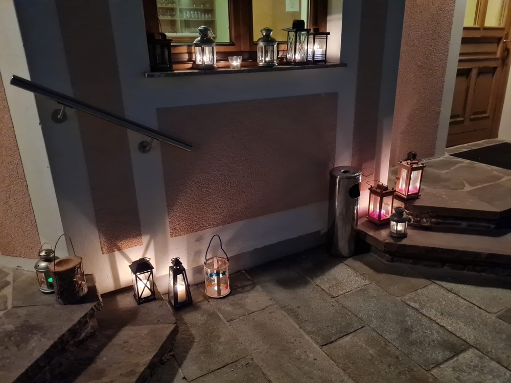 Das „Lichtermeer“ vor dem Altar drückt die Hoffnung aus, dass unsere lieben Verstorbenen nun im Lichte Gottes leben dürfen!