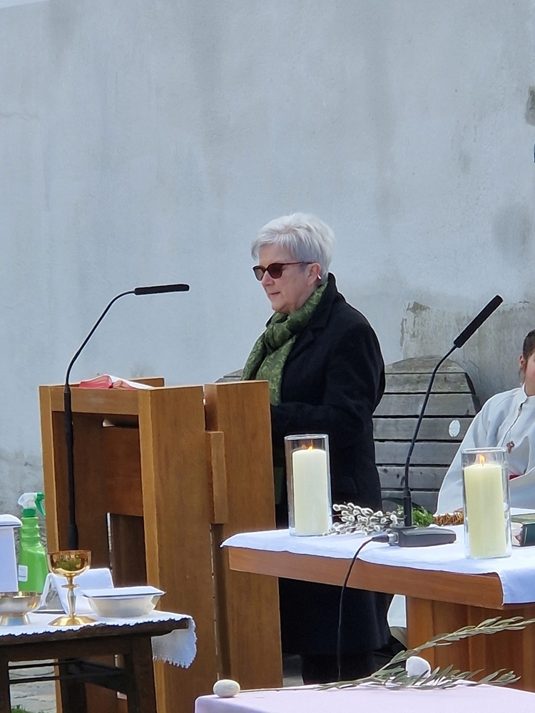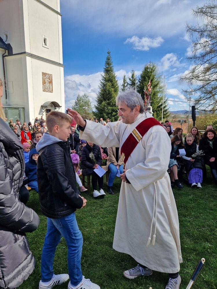 Diakon Franz Habith gestaltete um 11 Uhr in der Kaiserwald-Kapelle die Palmsegnung und Pastoralreferentin Ines Kvar leitete um 14:30 Uhr im Zettling-Park die Feier zur Segnung der Palmzweige.