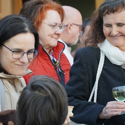 Bei der anschließenden Agape mit Brot und Wein auf dem Kirchplatz gab es dann für alle die Gelegenheit, persönlich mit Vikar Norbert Glaser auf seinen Geburtstag anzustoßen.