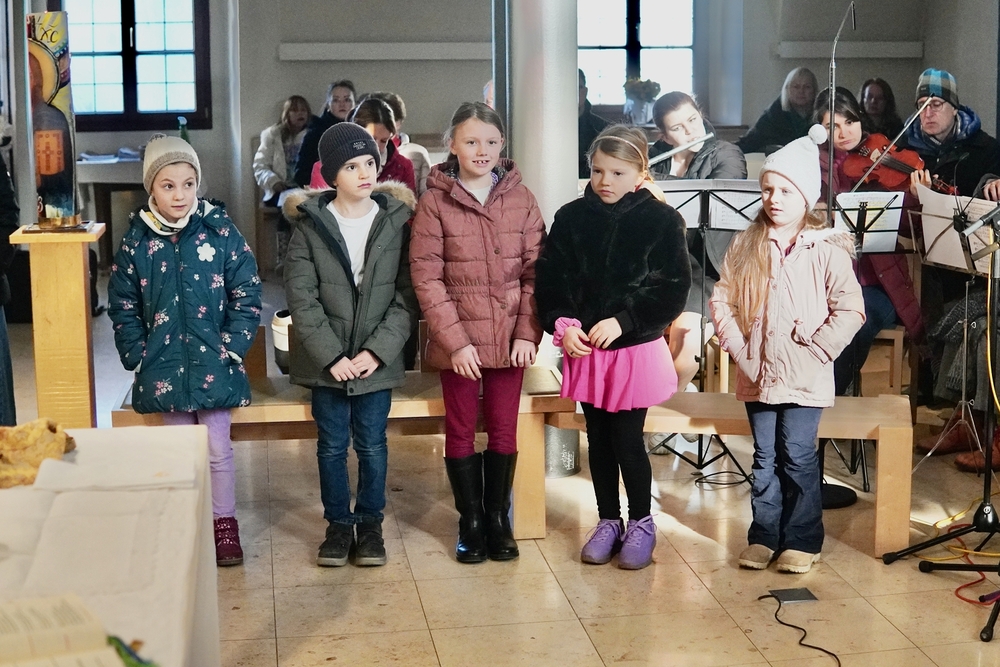Eine Sternsingergruppe überbrachte die Botschaft, die schon Tage zuvor in den Häusern verkündet worden war: Gott braucht uns, braucht dich und mich, um der Gerechtigkeit auf Erden eine Chance zu geben. Er braucht unsere Solidarität mit den Ärmsten!