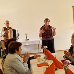 Im Anschluss waren die ehrenamtlichen Mitarbeiterinnen und Mitarbeiter beider Pfarren zum gemütlichen Beisammensein ins Kulturheim Wundschuh geladen. Dort konnte man - bei fröhlicher Musik der Lichtmessgeiger - köstliche Brötchen, Sekt und Krapfen genießen und den Rosenmontag mit angeregten Gesprächen ausklingen lassen.