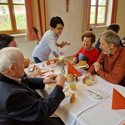 Seelisch gestärkt, begaben sich die älteren Herrschaften nach dem Gottesdienst zum gemütlichen Beisammensein ins Pfarrheim, wo Elisabeth Schöpf alle herzlich willkommen hieß.