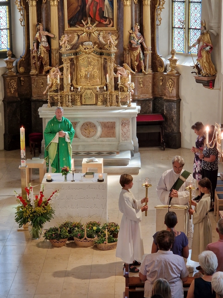 Einen bunten Familiengottesdienst, zu dem speziell die Taufkinder des letzten Jahres eingeladen waren, feierten Vikar Norbert Glaser und Diakon Michi Zepf mit Klein und Groß am 16. Juni in unserer Kirche.