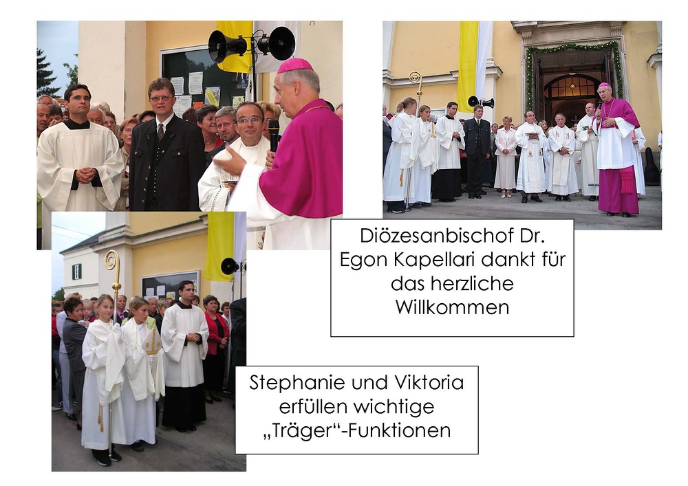 Besonders begrüße ich unseren Diözesanbischof Dr. Egon Kapellari, der heute unseren neuen Volksaltar weihen wird!